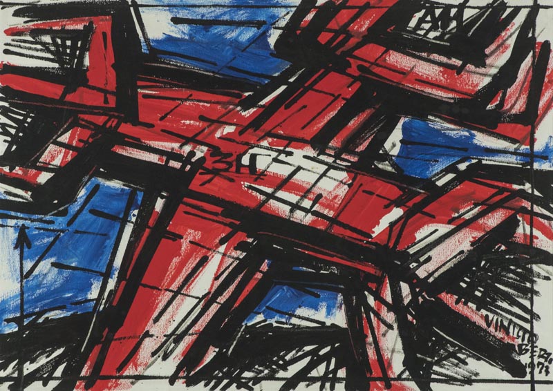 Vinicio Berti Immagine Multipla Antagonista 3 H 1973 Tempera su tela, cm. 50x70 Firma e data in basso a destra; Sul verso: firma, data e titolo. Autentica di "Liberia Maria Pini" su foto;