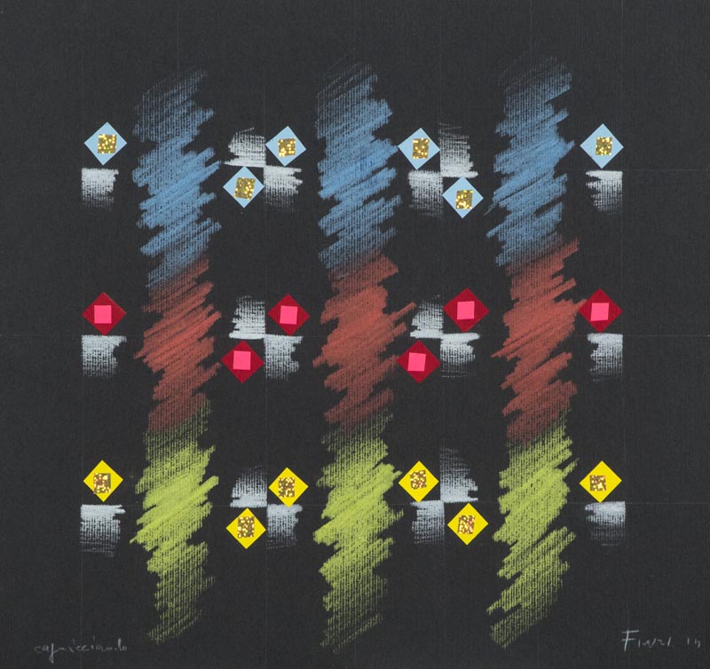 Ennio Finzi Capricciando Collage e tecnica mista su cartoncino, cm. 33,5x35 Firma in basso a destra, titolo in basso a sinistra. Autentica dell'Artista su foto.