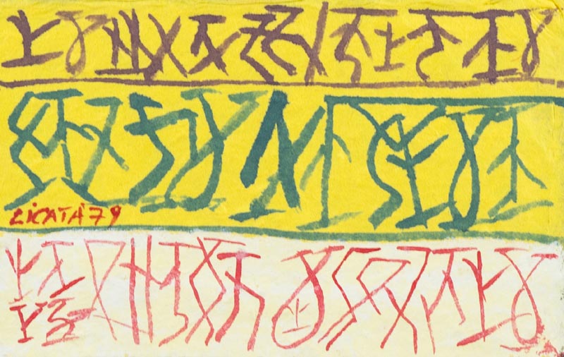 Riccardo Licata Senza titolo 1979 Tecnica mista su carta a mano, cm. 13x20 Firma e data in basso a sinistra. Autentica dell'Artista su foto.
