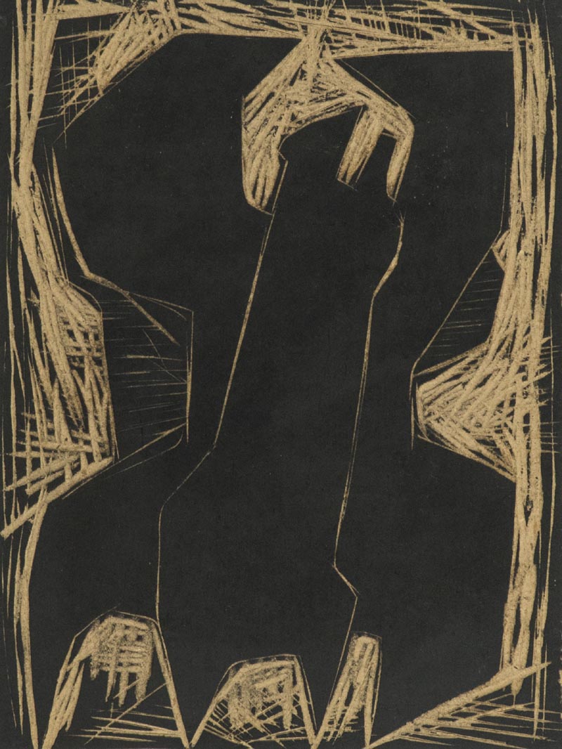 Gualtiero Nativi Senza titolo anni '90 Legno intagliato, cm. 27,5x20 Sul verso: timbro Archivio Gualtiero Nativi. Autentica dell'Archivio Gualtiero Nativi su foto con timbro a secco, firma "Berto Nativi" e Archivio n° L903.