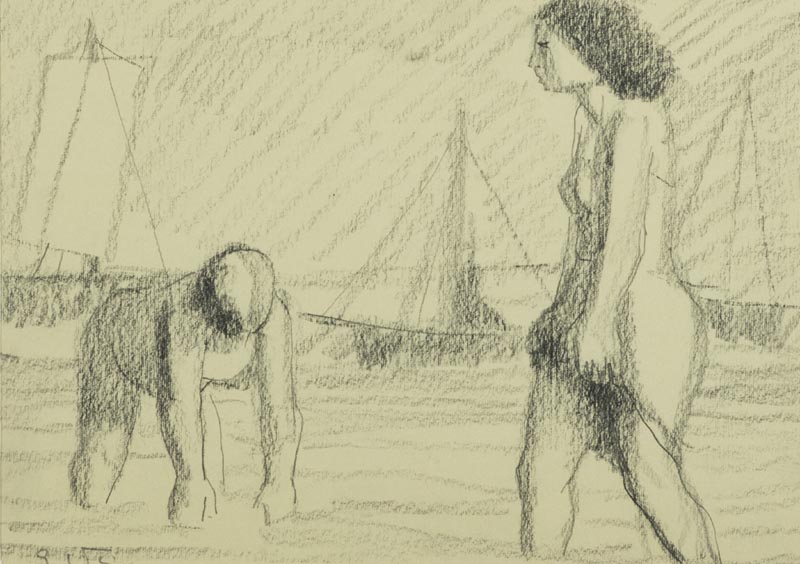 Giovanni Di Pisa Bagnanti Carboncino su carta, cm. 25x34 Firmato in basso a sinistra.