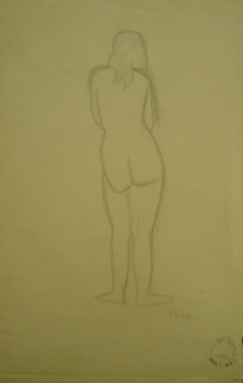 Atanasio Soldati Nudo di spalle Lapis su carta, cm. 39,5x26 Firmato in alto a destra; Timbro: "Opera Inventariata di Atanasio Soldati"; Autentica "Eredi Garau", su foto.