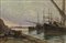 Renuccio Renucci Barche al porto Olio su tavola, cm. 21,5x32,5 Firmato in basso destra; Sul verso: timbro "Alberto e Carlo Chiellini", Livorno.