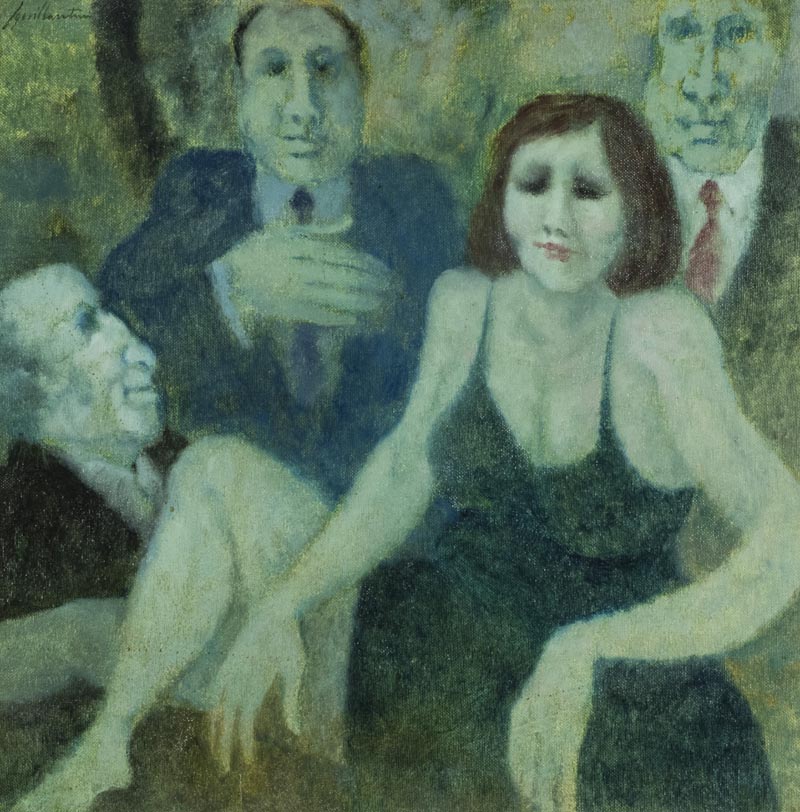 Remo Squillantini Figura di donna anni '80 Olio su tela, cm. 50x50 Firmato in alto a sinistra; Sul verso: firma. Autentica di Paola e Riccardo Squillantini su foto, con timbro a secco e Archivio n° 97/15.