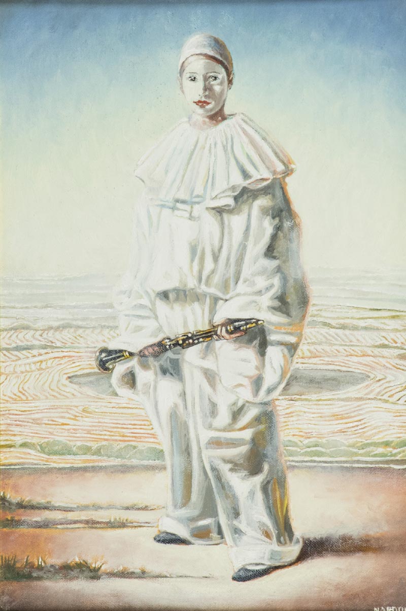Sergio Nardoni Pierrot Olio su cartone tela, cm. 30x20 Firmato in baso a destra; Sul verso: firma e titolo. Autentica dell'Artista su foto.