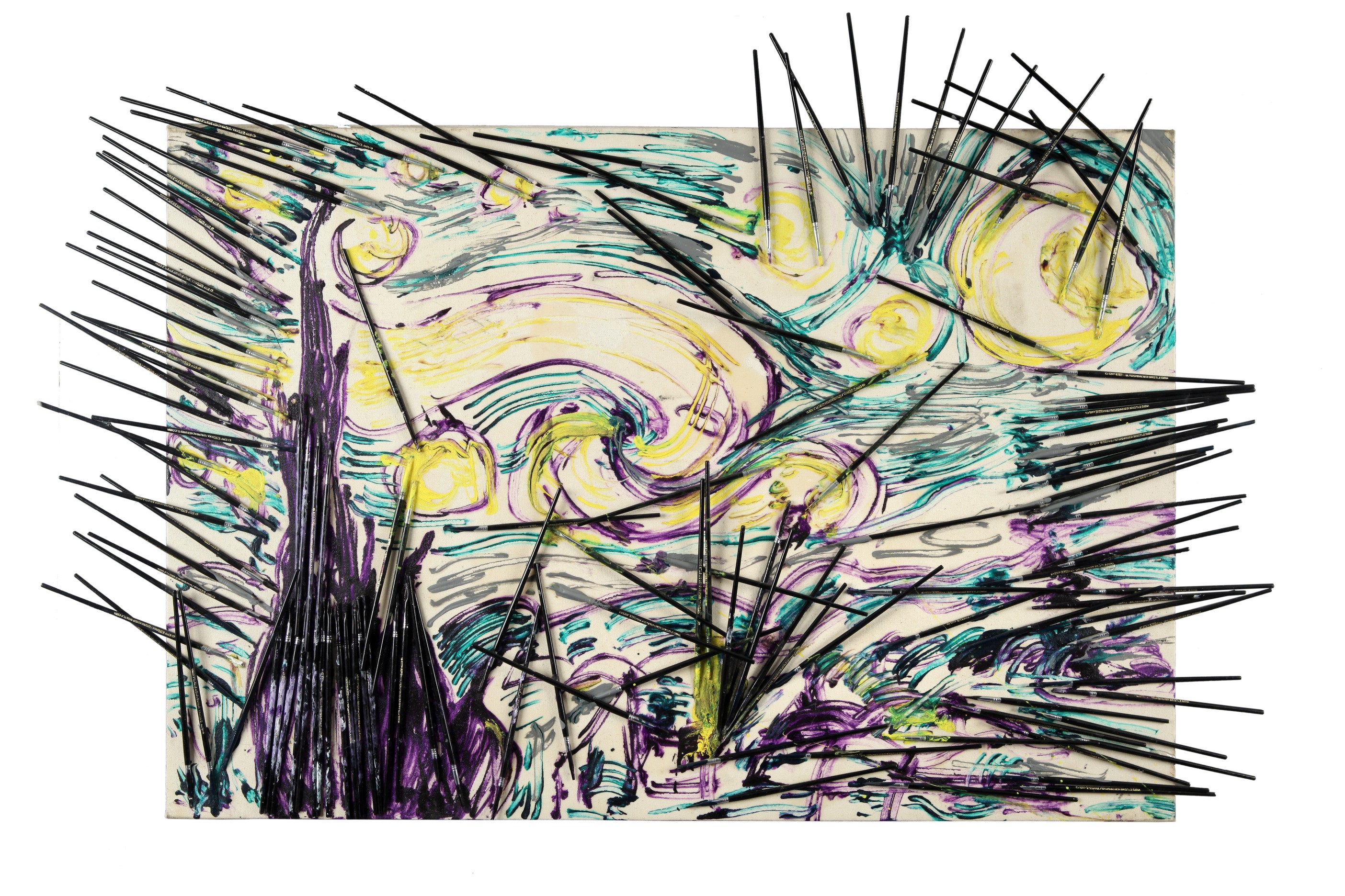 FERNANDEZ ARMAN (1928-2005) La nuit è trilèe 1994 pennelli e acrilico su tela su tavola cm 72x109x11 archivio Denise Burand-Ruel 6331 archivio NY 8027.94.029 Marisa del Re gallery sul retro etichetta Marisa dal Re gallery NY e etichetta Arman studio
