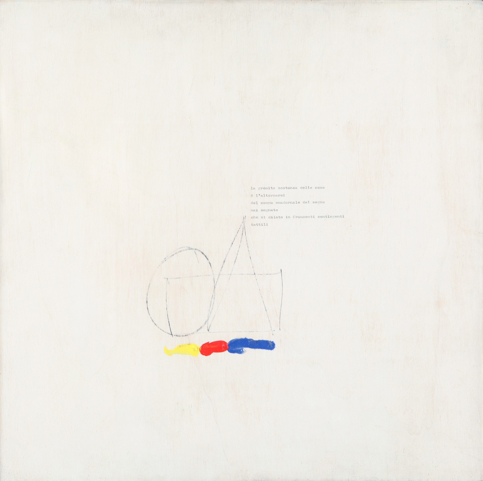 UGO CARREGA (1935-) Sintesi aperta Sengai 1973 tempera e dattilografia su tavola cm 50x50 firmato e datato sul retro autentica dell'artista su foto esposizioni: 1994 Napoli Castel dell'Ovo 2008 Ferrara poesia visiva 9 grandi maestri