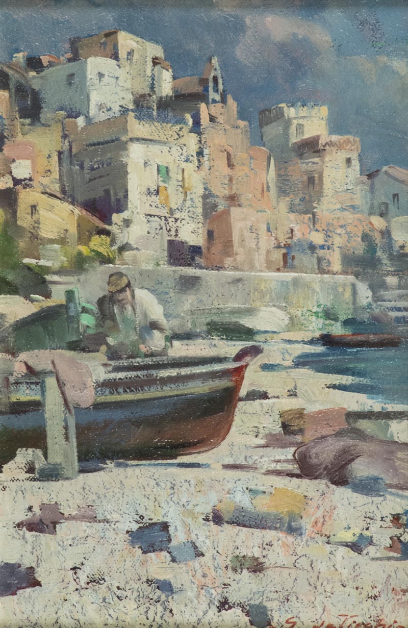 Giulio Da Vicchio Lungo la costa Siciliana, Manfredonia Olio su tela, cm. 30x20 Firmato in basso a destra; Sul verso: firma e titolo.