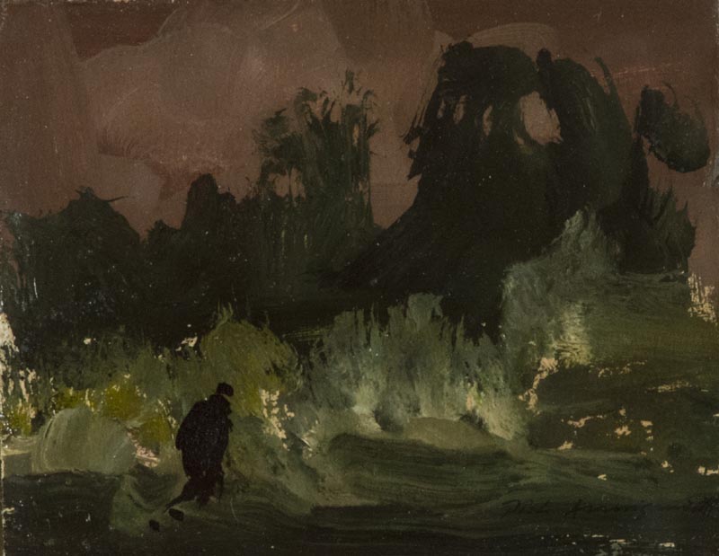 Pietro Annigoni Paesaggio con figura Olio su cartoncino, cm. 11x14 Firmato in basso a destra Autentica dell'Artista su foto con timbro.