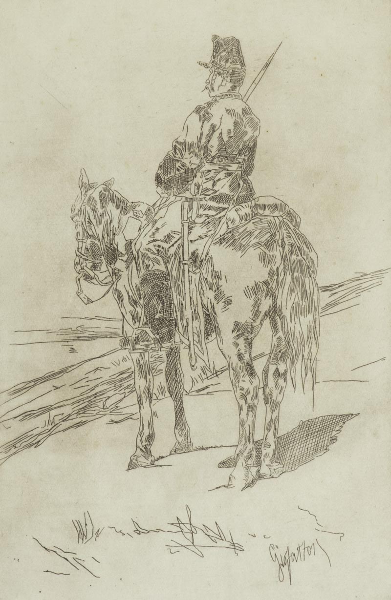 Giovanni Fattori Soldato a cavallo Acquaforte di cm. 26,5x18,5, su carta di cm. 33x26 Firmato sulla lastra in basso a destra.