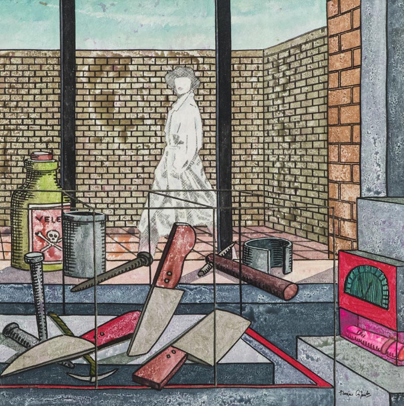 Tonino Caputo Museo casa della moglie di Barbablù Olio su tela, cm. 35x35 Firmato in basso a destra; Sul verso: firma e titolo.