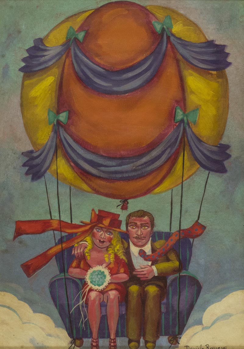 Daniela Romano Mongolfiera sopra Capo Sottile Olio su tela, cm. 70x50 Firmato in basso a destra; Sul verso: firma e titolo.