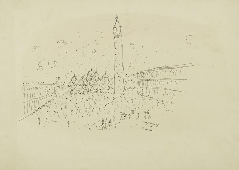 Franco Rognoni San Marco Olio su carta riportata su tela, cm. 43x59 Firma e titolo in basso a destra. Autentica della moglie Mariuccia Rognoni Noè su foto.