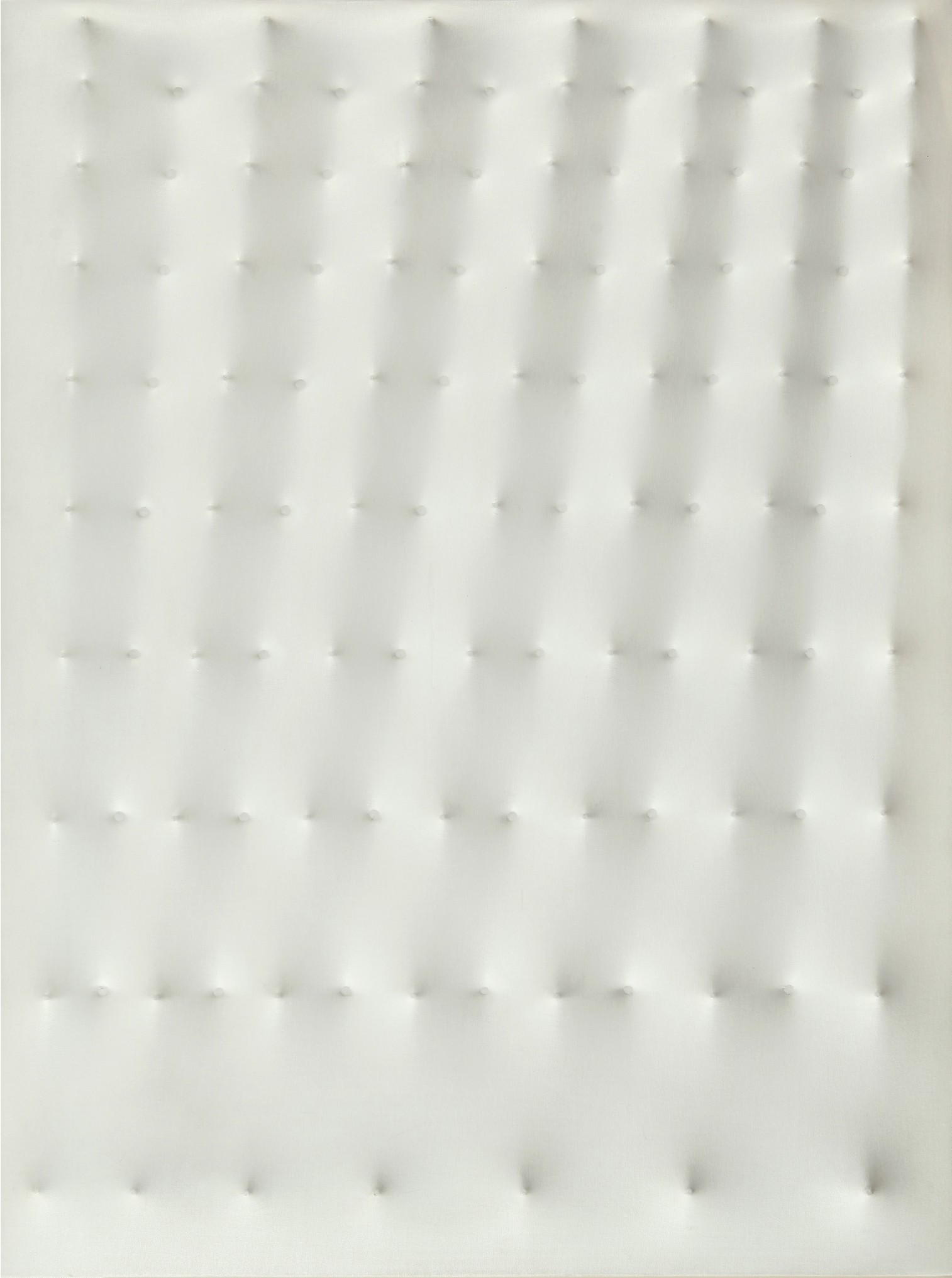 ENRICO CASTELLANI (1930-) Superfice bianca 1976 acrilico su tela estroflessa cm 80x60 firmato datato e titolato sul retro autentica dell'artista su foto con archivio Castellani 66-002 pubblicazioni: catalogo mostra galleria Poleschi 1990 Forte dei Marmi esposizioni 1990 Galleria Poleschi 1990