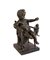 Antonio Pandiani ( Milano 1838 – 1928 ), Bambino con gattini. Scultura in bronzo di cm 36 x 25 x 25 firmato e situato ( Milano ) sulla base. Il bronzo, opera dello scultore milanese Antonio Pandiani, raffigura il congelamento di un istante di domestica ilarità, eseguito magistralmente dalla mano dell’artista il quale riesce a veicolare, oltre a una fedele ricostruzione della scena dal vero, la carica emotiva del momento concitato ritratto: la spensierata tranquillità di un bambino paffuto, assiso su una sedia di vimini, viene interrotta dall’assalto di due gattini che Pandiani riesce a modellare nel bronzo in tutta la loro vibrante plasticità. Di particolare valore aneddotico è la rappresentazione del felino che, riverso a terra, afferra con gli artigli il drappo che cinge l’atterrito fanciullo, minando il suo equilibrio precario. L’opera, che risulta prossima alla poetica scultorea di Adriano Cecioni, contemporaneo del nostro, è da ritenersi una prova superba di Antonio Pandiani, che nel 1886 rivela la fonderia di famiglia, nella quale inserisce una produzione artistica di alto livello, ideata e progettata dallo stesso. Abile decoratore e maestro del bronzo, sue opere sono conservate nelle collezioni del Quirinale ( bronzo raffigurante Re Vittorio Emanuele II in costume da cacciatore, esposto a Milano nel 1881 ) e nella Galleria d’Arte Moderna di Milano ( busto in bronzo di Alessandro Manzoni, 1905 ).