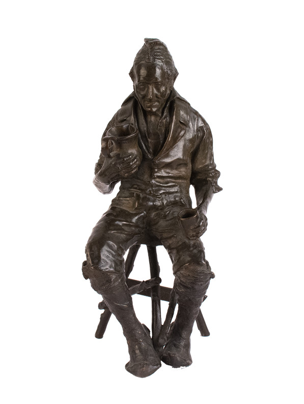 Pasquale Fosca ( Sora 1852 – San Paolo del Brasile 1929 ), Martino saggia il vino. Scultura in bronzo di cm 29 x 13 x 13.