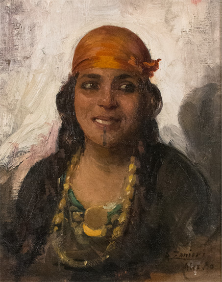 Arturo Zanieri ( Firenze 1870 – Maccagno 1955), Donna orientale. Olio su tela di cm 50 x 40 firmato, situato Alex ( Alessandria d’Egitto ) e datato 1930 in basso a destra.