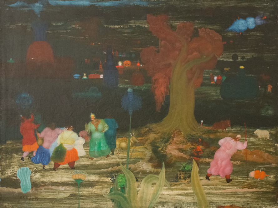 Erich Brauer (Vienna 1929 - ) Senza Titolo. Olio su tavola, 40 x 54 cm. Brauer è uno dei fondatori della Wiener Schule des Phantastischen Realismus (Scuola Viennese del Realismo Fantastico") assieme ad Ernst Fuchs, Rudolf Hausner, Wolfgang Hutter e Anton Lehmden. Celebre anche come progettista ed architetto, la sua pittura di impronta surrealista ha avuto largo successo nonostante il dilagare dell’astrattismo durante gli anni cinquanta e sessanta permettendogli guadagnare fama internazionale.