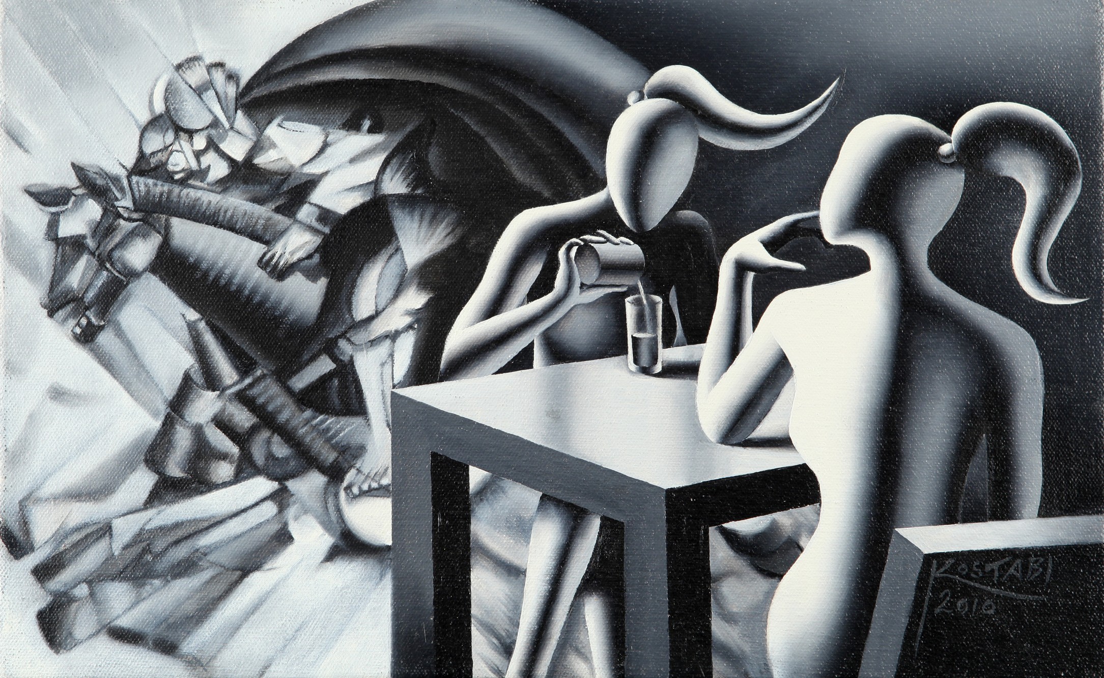 MARK KOSTABI (1960-) Pony tales 2010 acrilico su tela cm 25x40 firmato, datato e titolato sul retro