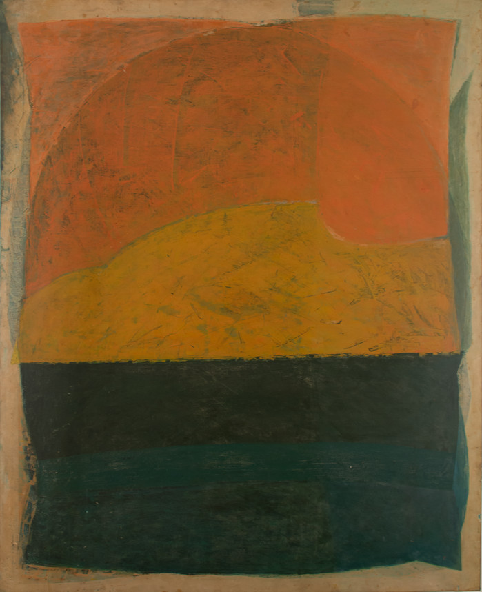Hans Tisdall (Monaco di Baviera 1910 – Londra 1997) Senza Titolo. Olio su tela, 126 x 101 cm. Nato in Germania, si trasferì a Parigi e poi, definitivamente, a Londra. Noto come disegnatore di stoffe e successivamente di copertine per libri vanta tre opere esposte in collezione permanente presso la Manchester Art Gallery.