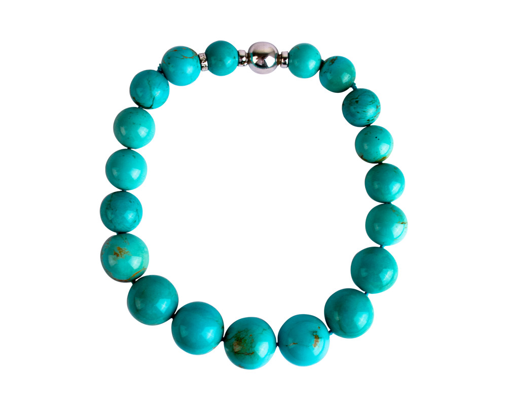 Filo di turchesi Firmato Petochi. a gradazione mm 17 - 25 Chiusura oro bianco 18 Kti Scatola originale