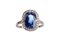 Anello con zaffiro ceylon e diamanti. Zaffiro cti. 3 c.ca brillanti cti. 0,30 c.ca Oro bianco 18 Kti.. Misura n°19