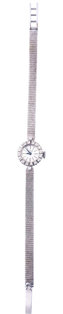 Orologio Universal Geneve anni '60. cinturino in oro bianco 18 Kti. Cassa con diamanti di contorno.Peso complessivo gr. 21,90