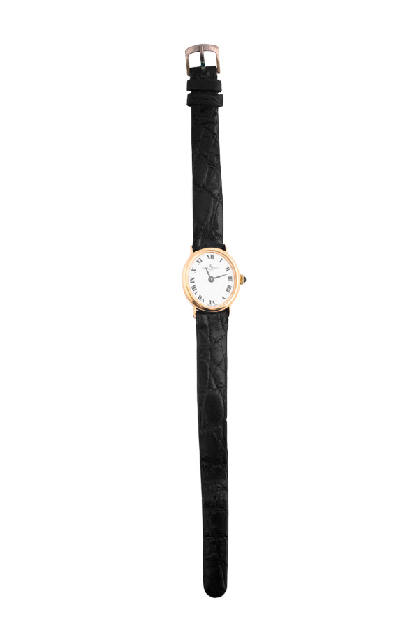 Baume Mercier ref. 3823-2 cassa n°500885,orologio da polso, in oro giallo giallo 18KT, movimento a carica manuale con cinturino in coccodrillo. Cassa: oro 18KT di forma ovale dimensioni 22mm. Quadrante: bianco romani. Movimento: a carica manuale. Bracciale: cinturino in coccodrillo con fibbia originale Baume Mercier