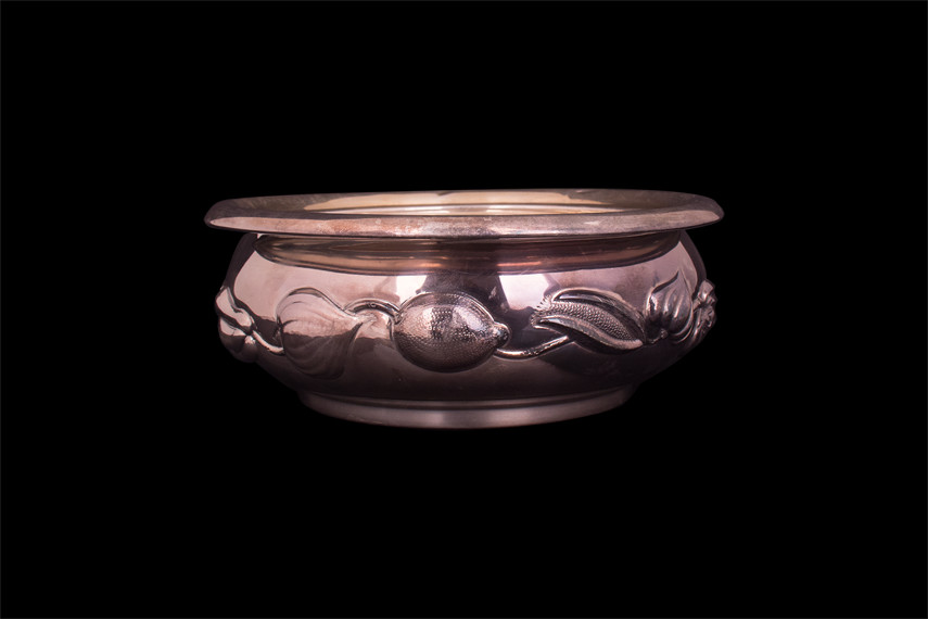 Ciotola con frutti sbalzati. Argento 800/°°° gr. 844