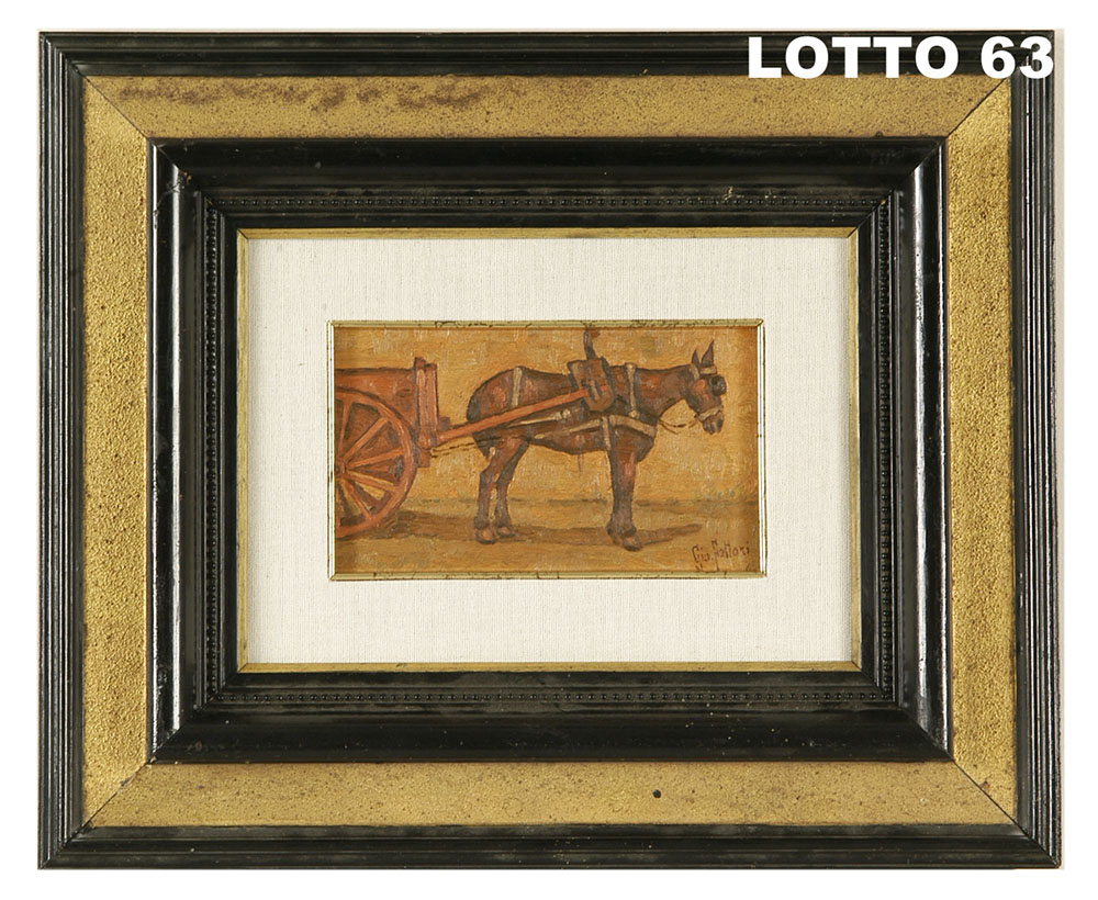 GIOVANNI FATTORI (1825 – 1908) STIMA 1.600,00 / 2.600,00 DIPINTO OLIO SU TAVOLA INTITOLATO “ASINO AL CARRO” MIS. 11 X 18 FIRMATO IN BASSO A DESTRA