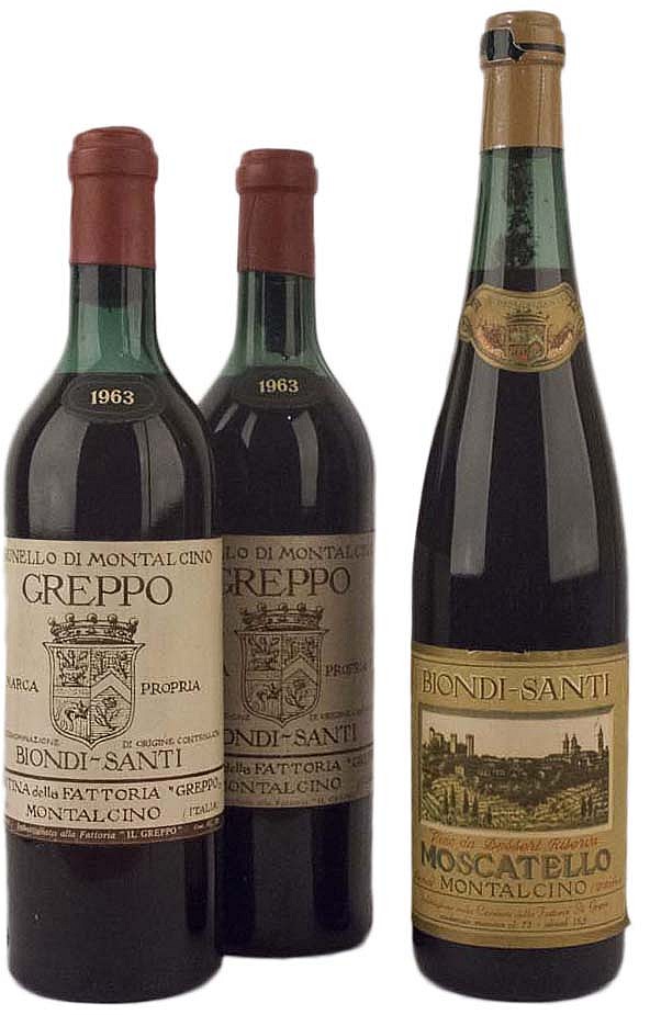 Biondi Santi Selection ( Tot. 3 bt 0,75 lt.: 2 bt Brunello di Montalcino Il Greppo 1963, 1 bt Moscatello Riserva Speciale Il Greppo )