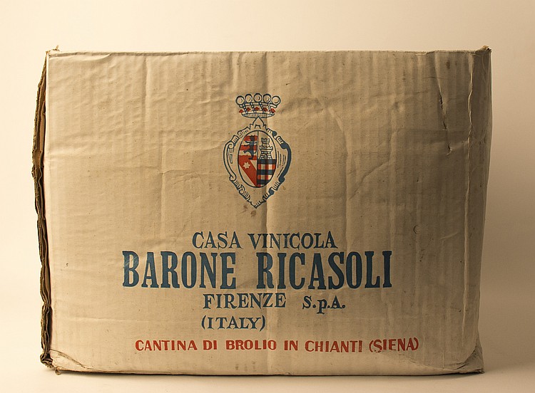 Chianti Classico Riserva 1962, Barone Ricasoli Castello di Brolio (Tot. 12 bt 0,75 lt. ) 12 bottles box that we opened for the first time, containing the prefered wine of the past Restaurant owner / Cartone aperto per la prima volta da noi, con il vino preferito dal vecchio proprietario del Ristorante.