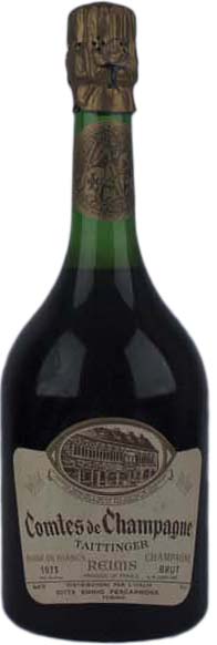 Champagne Compte de Champagne Blanc de Blancs 1973, Taittinger ( Tot. 1 bt 0,75 lt. ) Stained and torn label, damaged and fragile capsule / Etichetta macchiata e leggermente strappata, capsula danneggiata e fragile.