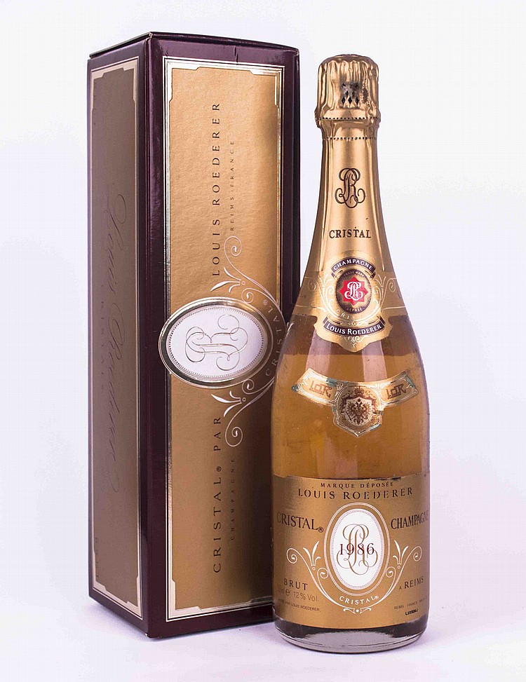 Cristal Champagne Brut, Louis Roederer ( Tot. 1 bt 0,75 lt. ) With original Box. Capsule and label slightly damaged / Con scatola originale, etichetta e capsula leggermente rovinata.