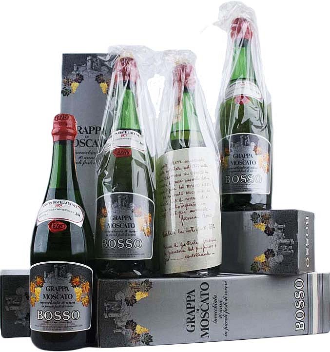 Grappa distillata nel 1975 e invecchiata 10 anni, Bosso ( Tot. 4 bt 0,75 lt....