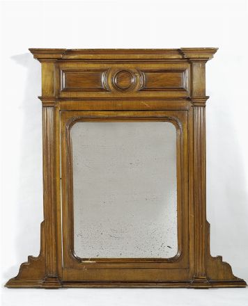 Cornice in noce intagliata, con specchio a bilico (parte superiore di...