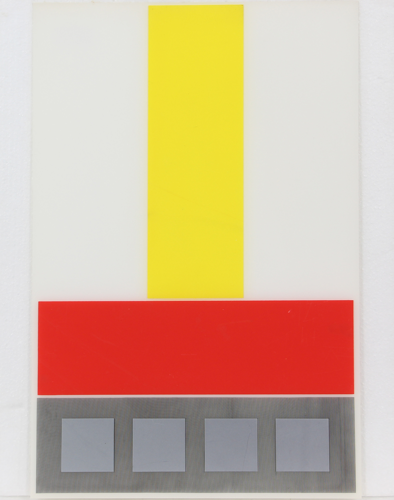 Jesus Rafael Soto, Jai-Alai I, 1969, serigrafia rosso, giallo, argento, bianco e nero su plexiglass, es. E/A di 300 esemplari, cm. 62x50, firma incisa in basso a destra, edizione Marlborough Gallery di Roma, opera pubblicata sul catalogo della Galleria Colophon di Milano, senza cornice