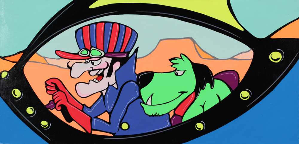 Andy, Wacky Race 01, acrilicofluo su tela, cm. 40x80, firma al retro,...
