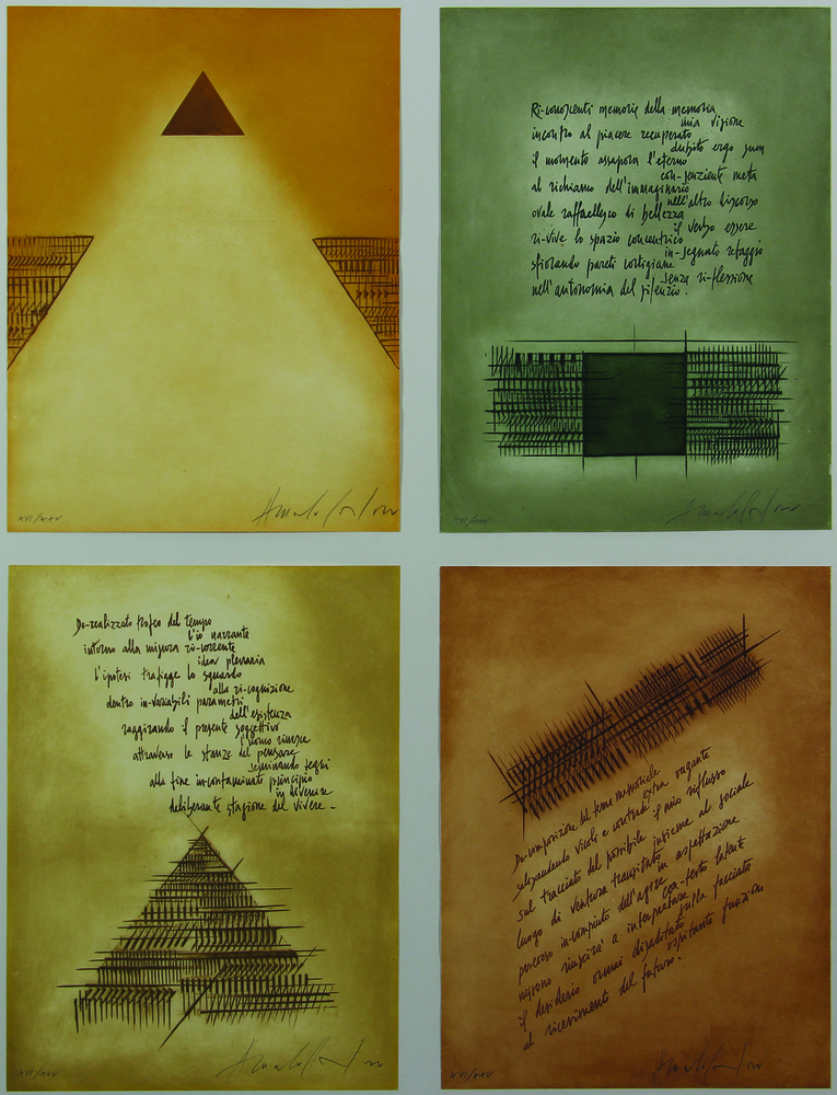 Arnaldo Pomodoro, De-cantare Urbino, lotto di 8 incisioni su carta montate in...