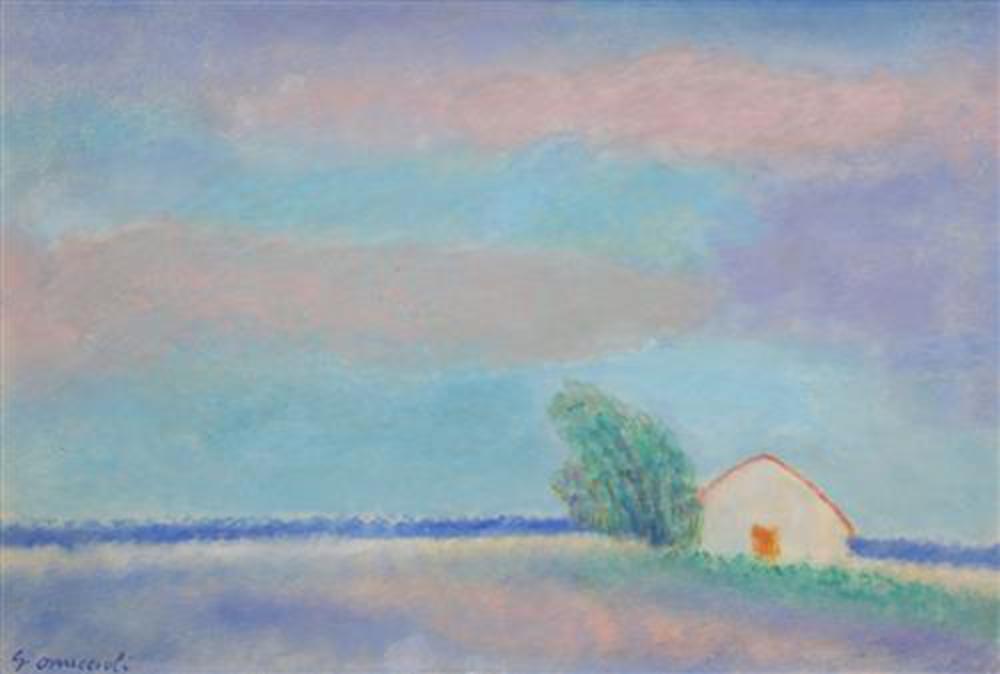 Giovanni Omiccioli, Capanno Bianco, 1968, olio su tavola, cm. 35x50, firmato in basso a sinistra