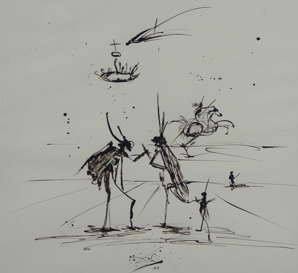 Salvador Dalì, Senza titolo, 1968, china su carta, cm. 32x35, firmata e datata in basso al centro e al retro, certificato di autenticità dell'artista su fotografia del 1976, opera della collezione del famoso fotografo Nino Lo Duca