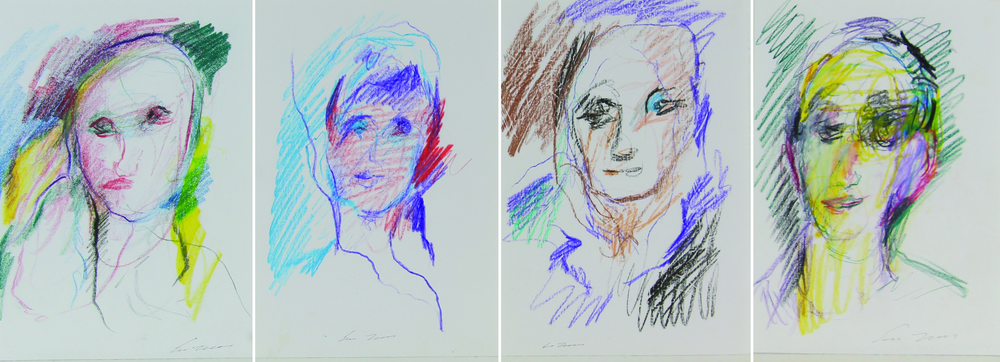 Ernesto Treccani, Volti, lotto di 4 tecniche miste su carta, cm. 30x21 ciascuna, firmate in basso, senza cornici