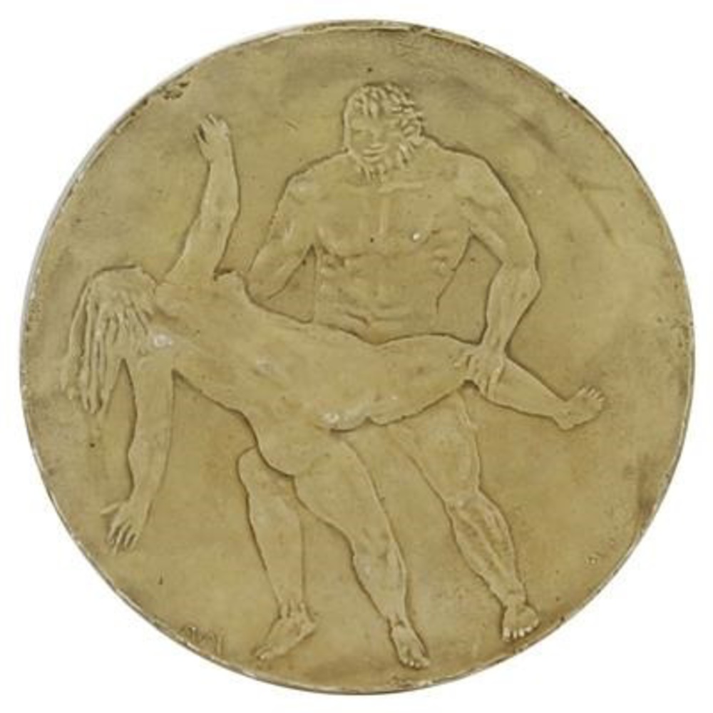 Arturo Martini, Il ratto della Sabina, 1939, medaglione in gesso, diam. cm. 19, pubblicato sul Catalogo Ragionato delle Sculture di Arturo Martini a pag. 323, certificato di autenticità su fotografia firmato dalla sig.ra Claudia Gianferrari