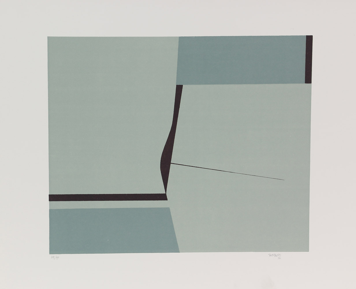 Arturo Bonfanti, Senza titolo, 1974, cartella contenente 6 litografie su carta, es. 69/100; edizione di 100 esemplari numerati da 1 a 90 e 10 numerati da I a X riservati all'artista, cm. 47x56 ciascuna, Edizioni Eurgrafika di Bergamo, le litografie sono contenute nella custodia originale