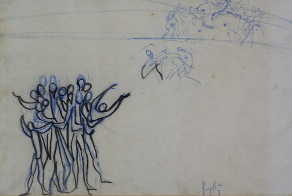 Antonio Vangelli, Senza titolo, anni '50, pastelli a cera su carta, cm. 28x43, firmato in basso a destra
