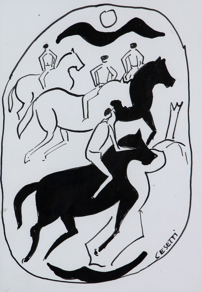 Giuseppe Cesetti, Senza titolo, inchiostro su carta, cm. 20,5x14,5, firmata e...