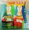 Vittorio Maria Di Carlo, Le Amiche, 2014, olio e collage su tela, cm. 70x70,...