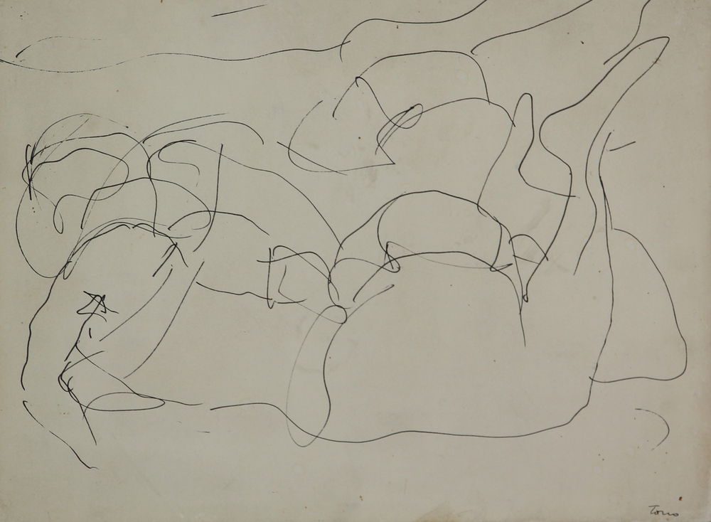 Tono Zancanaro, Senza titolo, china su carta intelata, cm. 21,5x28,5, firmato...