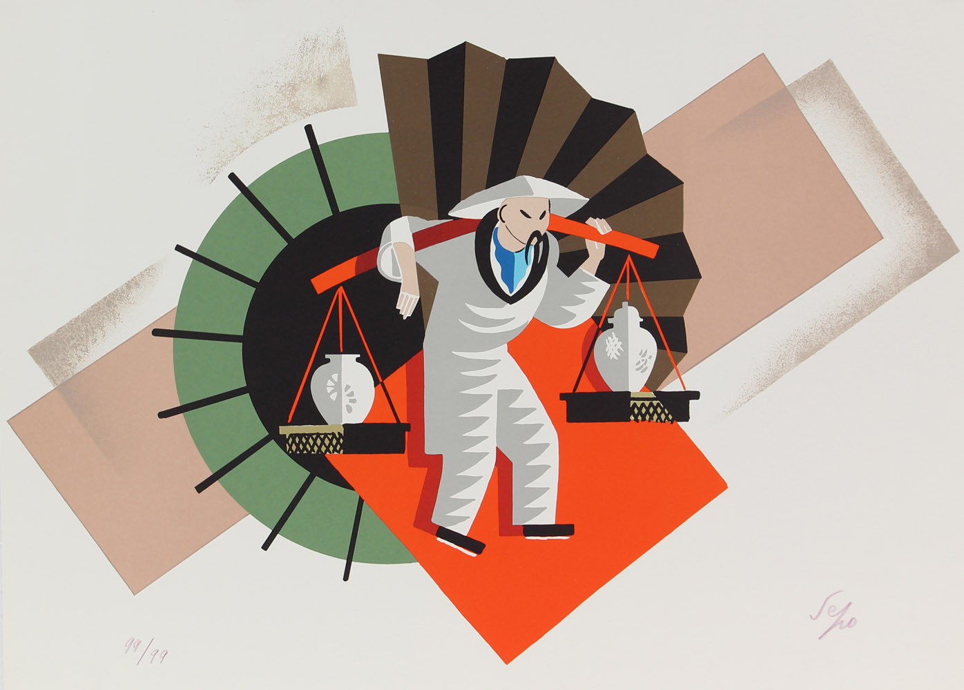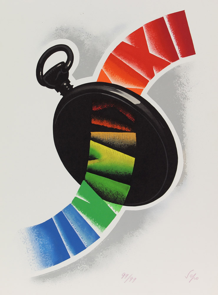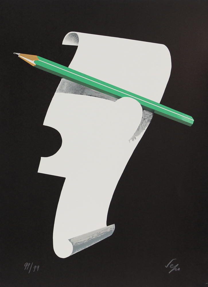 Sepo, L'Affichiste Tout-Court, 1975, cartella contenente 10 litografie su carta Magnani, es. 99/99, cm. 60x45 ciascuna, ognuna firmata in basso a destra, Edizioni Svolta, le litografie sono contenute nella custodia originale in plexiglass