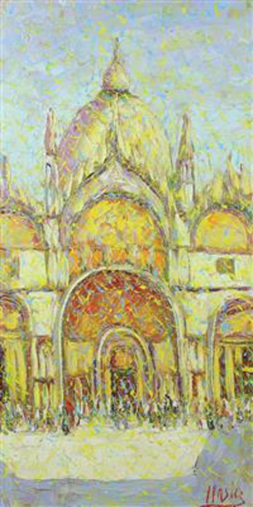 Lotto 516 | Roberto Masia, Venezia Basilica di San Marco, olio su tela, cm. 100x50,...